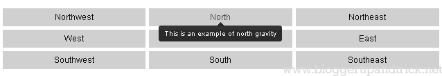 Demo : http://onehackoranother.com/projects/jquery/tipsy/#examples