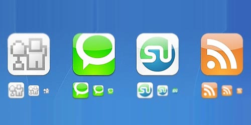 A set contains 3 of the most popular social network sites and an RSS on a an Ice Drop. Sizes are 512 x 512 pixels in PNG format.