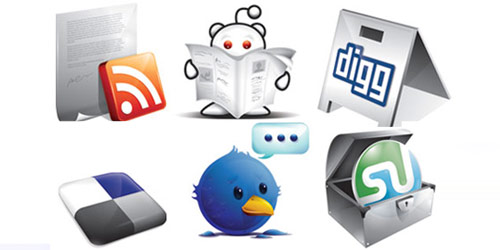 A set of 6 social icons (Digg, Twitter, Delicious, RSS, Reddit & Stumbleupon) are free to use on your websites and blogs. The icons are provided many different formats like PSD files, AI files,PNG, etc.