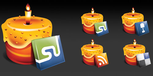 A set contains 3 of the most popular social network sites and an RSS on a Cake. Sizes are 512 x 512 pixels in PNG format.