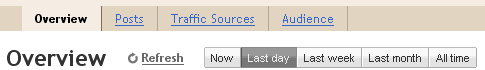 The coolest thing about the new Blogger Stats is that it monitors and analyzes your visitor traffic in near-real-time. You can see which posts are getting the most visits and which sites are sending traffic to your blog right now. For example, if a reader shares one of your blog posts on Twitter and the post is getting lots of clicks, you will see a traffic increase in Blogger Stats almost instantly, with the particular Tweet mentioning your post being identified as the traffic source. Of course, traffic data across longer time periods (day/week/month) and all-time historical data are available as well.
