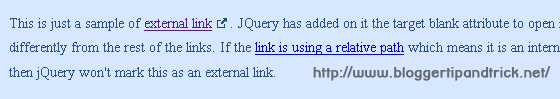 You are done.Now all of your external links open in new windows and can identify external links from other links.
