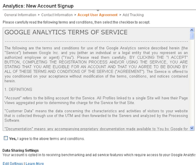 5.Copy the Google Analytics tracking code that displayed in the window, then "Continue". Next Page google will link you back to the main page, showing the website that your Google Analytics accout is tracking on.