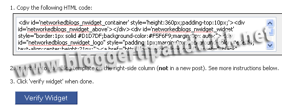 10.Now add their widget code to your site.You can remove the code from your site,after verification.