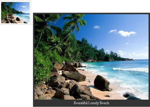 <a href="http://3.bp.blogspot.com/_4HKUHirY_2U/SvqkDG7CNCI/AAAAAAAAAKE/JLwN0jYPDWc/beach+large.jpg" class="preview" title="Beautiful Lonely Beach"><img src="http://3.bp.blogspot.com/_4HKUHirY_2U/SvqkJgkY5ZI/AAAAAAAAAKM/LC0a177Jnk0/beach+small.jpg" alt="gallery thumbnail" /></a>